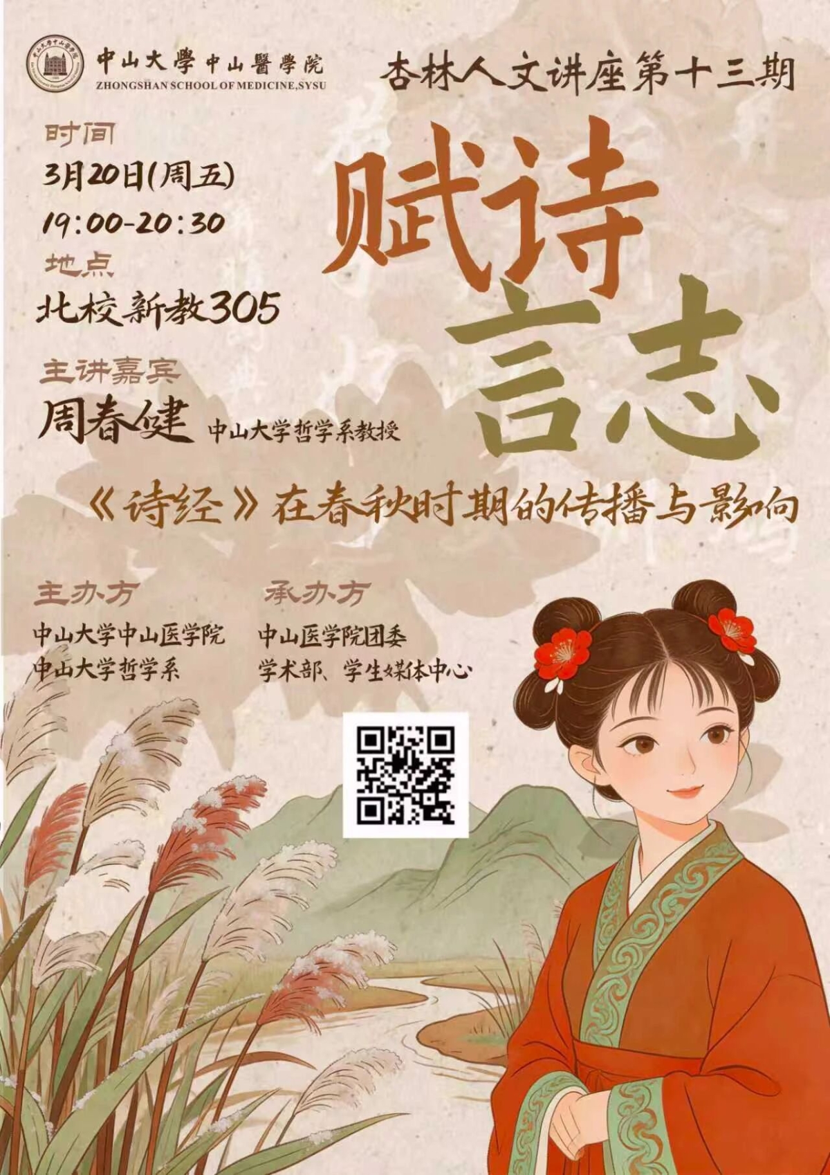 导航痕迹 小狐狸直播 科学研究 学术讲座 《诗经》在春秋时期的传播与影响 科学研究 科研通知 学术讲座 科研平台 办理指引 《诗经》在春秋时期的传播与影响 发布人:张玉琦 发布日期:2026-03-23